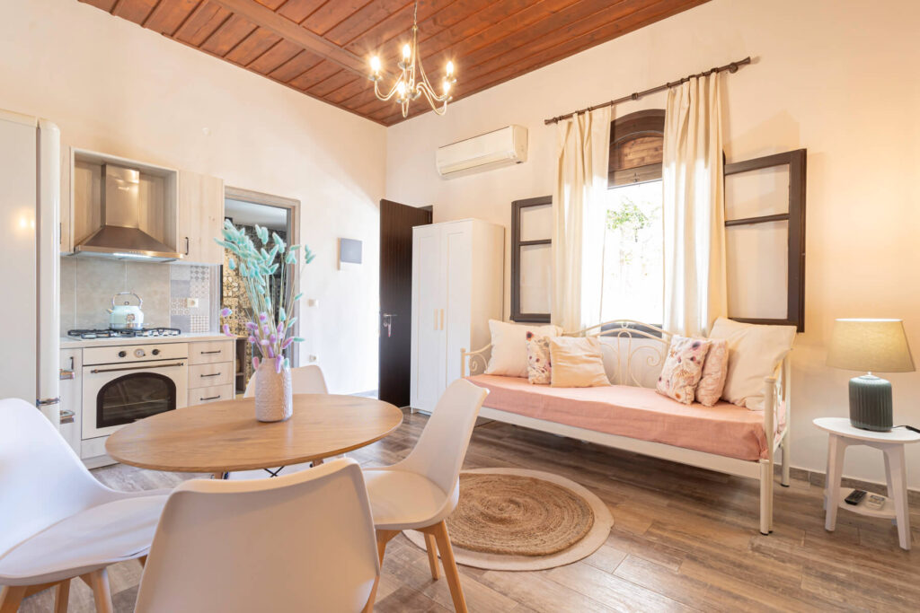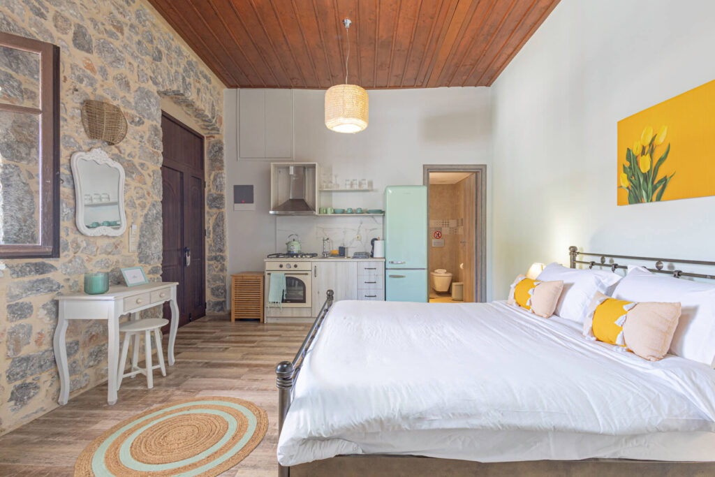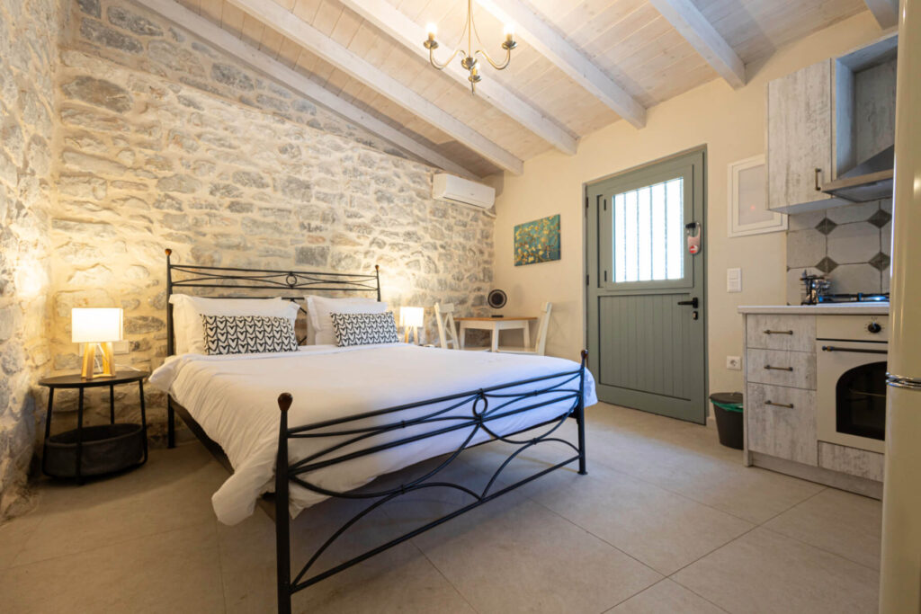 Σύγχρονη όαση στην Αρεόπολη: Χαλαρώστε στο πρόσφατα ανακαινισμένο δίκλινο στούντιό μας, με κλιματισμό, σύγχρονες ανέσεις και μια πινελιά ελληνικής γοητείας. Ιδανικό για ζευγάρια που αναζητούν μια άνετη απόδραση στην καρδιά της Αρεόπολης.