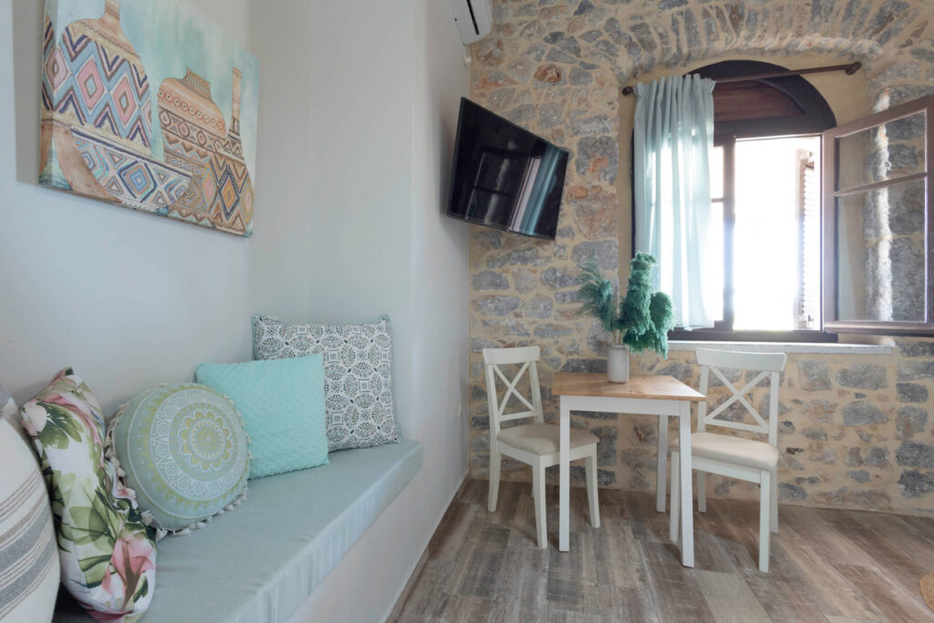 Αγκαλιάστε τη νεωτερικότητα σε ένα ιστορικό περιβάλλον: Χαλαρώστε στο πολυτελώς ανακαινισμένο δίκλινο στούντιό μας. Ο κλιματισμός εξασφαλίζει τη βέλτιστη άνεση, ενώ οι σύγχρονες ανέσεις παρέχουν μια άνετη διαμονή. Απολαύστε το καλύτερο και από τους δύο κόσμους στην Αρεόπολη.