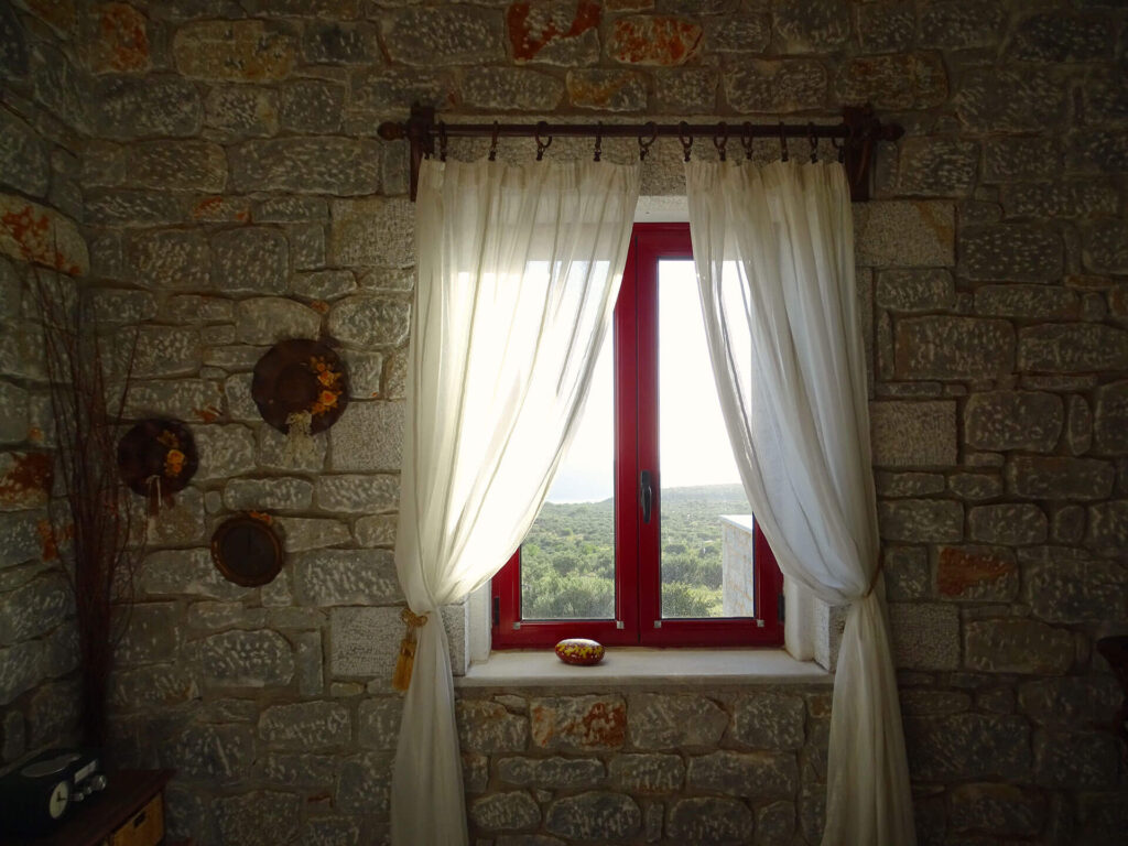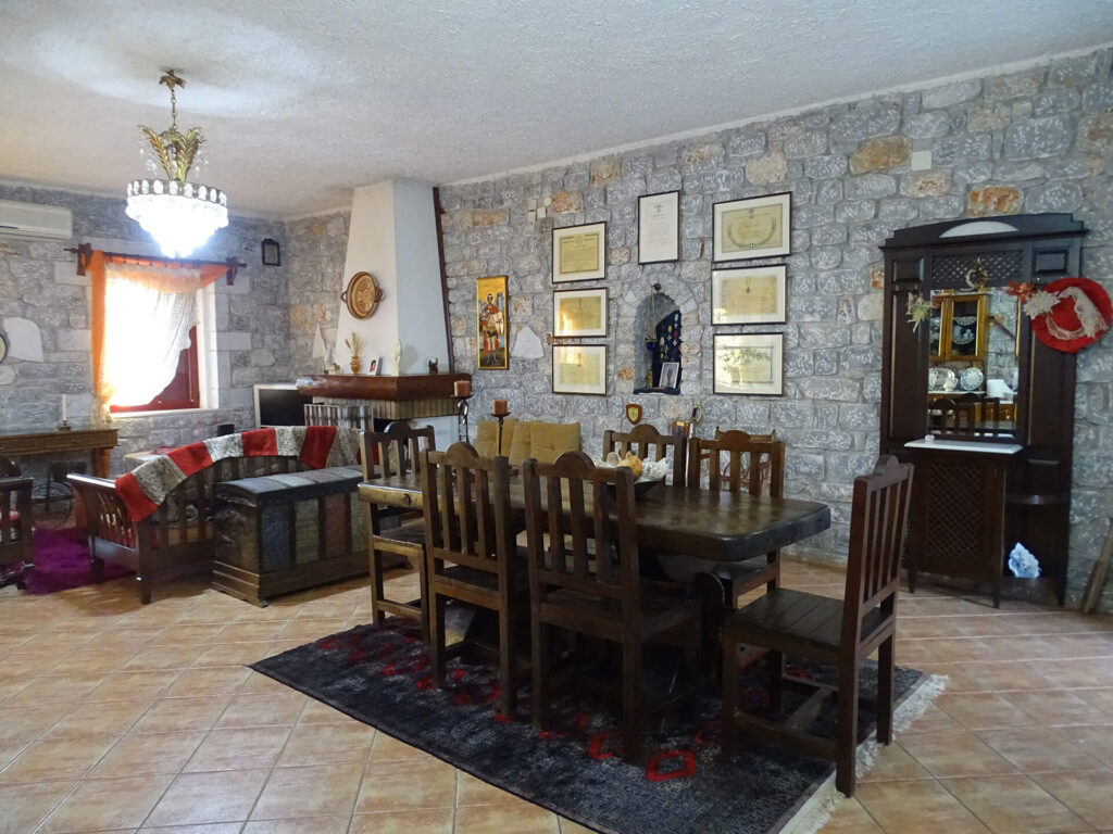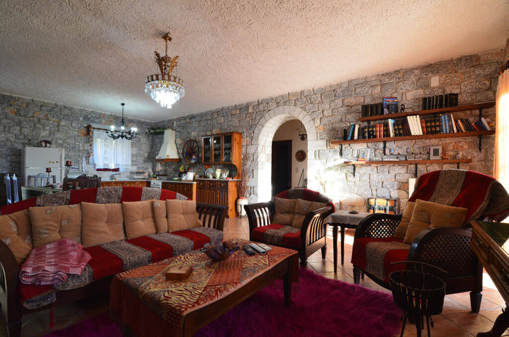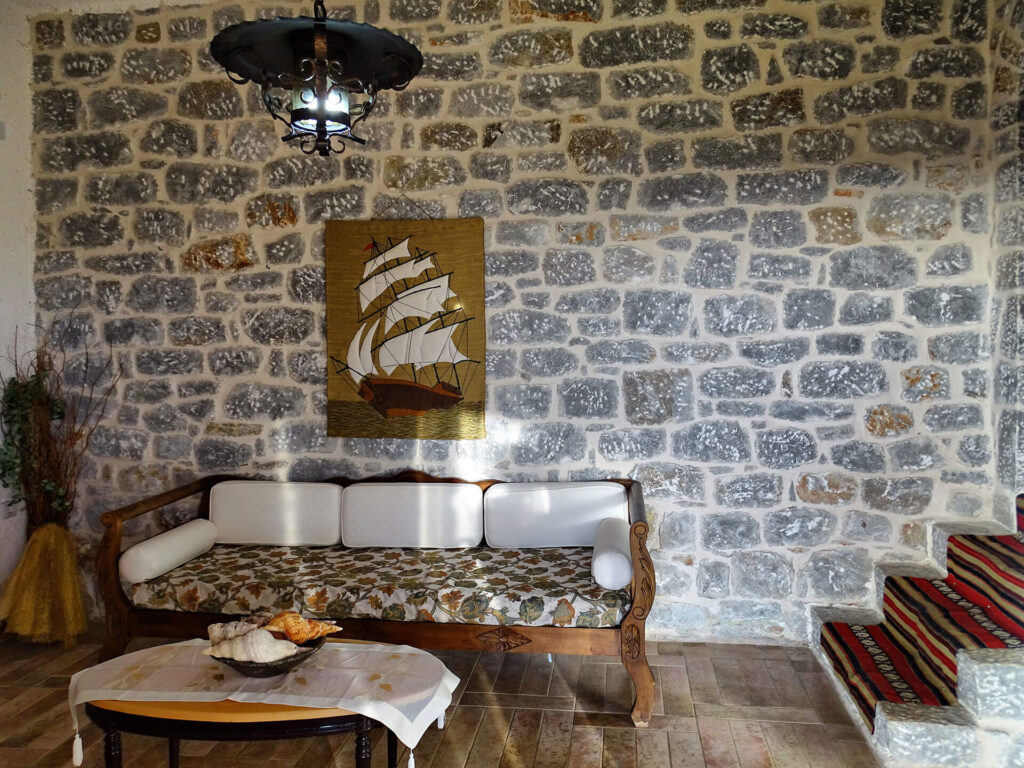 Sofia Green Villa is located at the quiet village of Mina, in a lush 1,5 acre estate. Is a traditional 250 sq.m stone mansion, surrounded by lawn, fruit and ornamental trees, cacti and flowers. The location is beautiful, in a unique area of ​​Mani, over a fertile plain, with stone towers, mild slopes and traditional settlements at the surroundings along with magnificent views to the sea and the famous Tigani cape… The villa belonged to a wealthy, historic family of Mani which is profound all around the house. It has stunning stonework, while in the interior you may find antique pieces of furniture of the 19th century and several heirlooms, evidence of the family history. The comfortable rooms, the luxurious furnishing, the beautiful lighting and traditional decoration, offer the visitor the authentic ambience and the glamour of an aristocratic era.